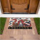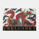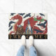 Wales Welcome Doormat com arte moderna com patriótica Welsh Flag junto com um Grande Dragão Vermelho, mago Merlin, corvos e ursos viking no estilo Art Nouveau. Brancos originais de inverno, tapete de casa divertida para qualquer ocasião. Personalize facilmente o texto "bem-vindo".