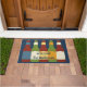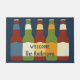 Bem-vindos a sua casa e mostre seu amor pela cerveja de bebendo ao mesmo tempo com esta porta personalizada. O tapete apresenta ilustrações de cinco garrafas de cerveja separadas. A área do rótulo na frente está pronta para ser personalizada com um nome em caracteres azuis.