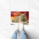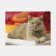 Gato britânico do shorthair do Lilac com os olhos amarelos que encontram-se na terra no quarto