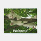 Um gatinho branco deitado num galho de árvore em meio a uma folhagem verde. O pelo do gatinho é branco puro, contrastando com o nariz rosa e as patas de pata. Seus olhos são um amarelo impressionante. O gatinho é posicionado sobre um galho resistente, castanho, com folhas ao seu redor, criando uma estrutura natural. A palavra "Bem-vindo" é escrita em letras brancas e em negrito na parte inferior da imagem. A iluminação é macia e natural, destacando as características do gatinho e o verde vibrante das folhas. A composição é equilibrada, com o gatinho como foco central, cercado pelos elementos naturais da árvore.