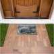 As palavras neste tapete de porta dizem, "Shh! Nós Levamos Naps De Gato." Este tapete de porta mostra, Shady, nosso gato cinza muito macio com bigodes brancos longos, olhos verdes, e um rosto adorável enquanto ele se prepara para uma soneca na sombra sob uma árvore. Este lindo gato encontrou seu caminho até nossa casa e capturou nossos corações.