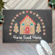 "Casa Doce". Decorra a sua entrada em "estilo" com este tapete personalizado de boas-vindas, personalizado, único e divertido! Uma casa giro e balbuciosa, árvores de biscoitos, estrelas, corações, doces, e tipografia brincalhona, sobrepõem um fundo negro de painéis de cinza de carvão negro. Adicione seu nome de família ou outra cópia. Também estão disponíveis cartões, autocolantes, enfeites, canecas, artigos de bebidas, travesseiros, decoração doméstica e muito mais. Que maneira divertida de celebrar esta época festiva e de dar as boas vindas a todos que entram na sua casa! Usando os modelos fáceis de usar, digite o nome da sua família ou outra cópia e você pode personalizar facilmente esta porta de férias. Por favor, me mande mensagens com quaisquer perguntas ou solicitações.