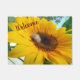 Girassol Amarelo e pena - Porta Um girassol amarelo brilhante que uma pena pousou ao receber seus convidados