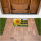 Este tapete de porta é para vocês do sul! Tem um grande girassol amarelo, cerca de madeira e "Howdy Ya'll Welcome". Pode usar dentro e fora. Sobre a área ao ar livre.