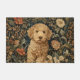 Uma ilustração encantadora de um cachorrinho de Goldendoodle em um antigo jardim inglês no estilo de William Morris.