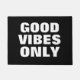"Bons Vibes Apenas", inspiradora, diz o tapete da porta da frente. tapete de entrada preto e branco 18x24 para entrada interior ou exterior. Design de tipografia de letras grandes. Engraçado ditado motivacional pela energia positiva. Bela ideia de presente para nova casa, festa de inauguração, local de casamento, loja, compro, escritório da empresa, negócios etc. Contexto e texto de cor personalizáveis. Portas de boas-vindas personalizadas disponíveis em tamanho pequeno e grande. decorações/decorações personalizáveis para sua casa. Ideia divertida de presente para casal ou recém-casados.