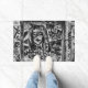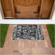 This modern, cool black and white graffiti urban street art indoor outdoor doormat features a trendy, painted city brick wall design. Image copyright Marg Seregelyi Photography.