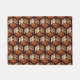 Porta em um clássico padrão quimono japonês de gruas estilizadas, arranjadas em um padrão de hexágonos, em bronzeado, ferrugem / terracota, e creme, em um fundo castanho de chocolate escuro