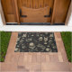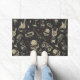Crânio de estilo Grunge, ossos cruzados e vários instrumentos musicais em fundo preto, padrão de repetição sem descontinuidades