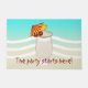 Apresenta uma imagem de uma colada de pina e lê "A festa começa aqui!"