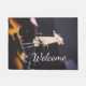 Doormat baixo elétrico do guitarrista. As mãos do baixista imediatamente após um baixo feito sob encomenda. O texto lê a boa vinda tradicional, mas você pode mudá-la a qualquer coisa que você gosta. Uma boa vinda maravilhosa a seu casa ou estúdio, ou um grande presente para seu baixista, músico ou melómano favorito.