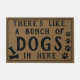 Surpreenda a sua família, amigos e vizinhos com esta porta engraçada que mostra o seu amor pelos cães. tapete cômico com um verso engraçado para os entusiastas caninos. Verse diz: "há como, um BUNCH de cachorros aqui" em texto preto com ossos de cachorro e uma trilha de pegadas. Design castanho e preto permite uma superfície mais resistente à sujeira, porque haverá, tipo, um monte de cachorros correndo sobre esta porta.