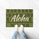 Vidro verde-oliva. A mensagem de Aloha dá as boas-vindas aos seus visitantes no seu paraíso tropical. As antigas tapas havaianas inspiram esse design primitivo usado nas culturas polinésia e havaiana. Esses tipos de designs eram frequentemente impressos em camisas de aloha e paraus para dançarinos tradicionais de hula. Este design vem em várias cores. Você pode personalizar a mensagem.