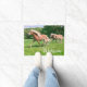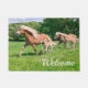 A égua de Haflinger com potros frisky correndo juntos sobre um pasto numa paisagem linda. Uma raça de cavalo de castanha loira, também chamada de haffores ou de vivacidade, foto tirada por Katho Menden. Esta porta de impressão de fotos, o tapete de boas-vindas, é uma ideia de presente para amantes de cavalos