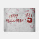 Uma ilustração horrível e assustadora do Dia das Bruxas, com uma impressão de mão sangrenta e uma espadilha de sangue num fundo gelado.