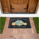 Que o truque ou os tratadores com alergias saibam que a sua casa é uma paragem obrigatória com esta doce porta. A design apresenta um sorridente jack teal ou abóbora-lanterna flanqueada por abóbora menor, com "tratamentos amigáveis à alergia disponíveis aqui" em letra morta.