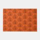 Um tapete de porta com fundo laranja e um impressão de abóbora de Halloween. Personalize este tapete ou comprar como está.