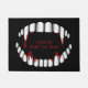 Um tapete de porta com fundo preto e um impressão de vampiro de Halloween. Personalize este tapete ou comprar como está.