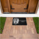 O tapete da porta do Halloween é mostrado com um impressão de crânio assustador. Personalize este tapete ou comprar como está. Imagem licenciada