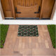 Um tapete de porta mostrado com fundo preto e uma impressão de zumbi do Halloween. Personalize este tapete ou comprar como está.