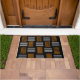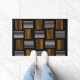 Esta porta tem uma design moderna do século médio que se parece com uma tecelagem com linhas laranja e brancas num campo de preto.