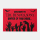 Crie uma entrada assustadora neste Halloween com esta porta vermelha com mãos e morcegos zombie assustadores, e o texto ENTER SE VOCÊ SE OUSAR. Todo o texto é personalizável para que você adicione sua própria mensagem e seu nome de família