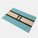 HAMbyWhiteGlove aka HAMbWG é um prazer design e oferecer-lhe tapetes de porta personalizados. Este pode ser qualquer fundo colorido e o fundo é uma faixa fina de dois tons. As fontes também podem ser alteradas, tamanho, estilo e cor. Há uma banda bege preta e de trigo atrás do monograma. Basta escolher a opção personalizar para adicionar seus detalhes e, em seguida, personalizar para alterar as cores. Mostrado em Aqua.