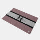 HAMbyWhiteGlove aka HAMbWG é um prazer design e oferecer-lhe tapetes de porta personalizados. Este pode ser qualquer fundo colorido e o fundo é uma faixa fina de dois tons. As fontes também podem ser alteradas, tamanho, estilo e cor. Há uma faixa negra e cinza atrás do monograma. Basta escolher a opção personalizar para adicionar seus detalhes e, em seguida, personalizar para alterar as cores. Mostrado em Mauve.