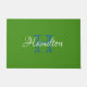 HAMbyWhiteGlove aka HAMbWG é um prazer design e oferecer-lhe tapetes de porta personalizados. Este pode ser qualquer fundo colorido e qualquer fonte colorida. Basta escolher a opção personalizar para adicionar seus detalhes e, em seguida, personalizar para alterar as cores. Mostrado em verde com o logotipo azul inicial. v 200.