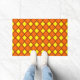 Esta porta tem um design de 1970 de diamantes dentro marrom sólidos de diamantes amarelo em um campo de laranja.