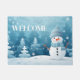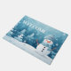 Esta porta de férias é mostrada com um impressão de cena de boneco de neve de Natal. Personalize este tapete ou comprar como está.