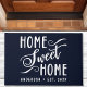 Esta design apresenta as palavras "home doce home home home" escrito em uma letra de script de caligrafia escrita à mão. Personalize este design rústico bonitinho com seu nome de família e ano estabelecido. O dom único e único para os novos donos de casa ou recém-casados.