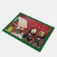 Este doormat caracteriza os retrievers dourados vestidos como homens de pão-de-espécie por uma casa de pão-de-espécie. Esta esteira seria perfeita com suas decorações do Natal ou para um presente de época natalícia.