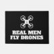 Homens de verdade pilotam drones com um tapete de porta para piloto de drones. tapete de entrada preto e branco.