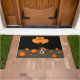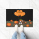 Esta design apresenta um cão Basset Hound vestindo uma fantasia de abóbora cercada por algumas abóboras e balões.