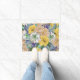 Uma ilustração das folhas de monstera verde, verde e floral e violeta vibrante, elegante, amarela, verde e rosa, com dahlias, ervilhas e flores botânicas, cor amarela clara, branca, verde macio e verde claro, sobre fundo amarelo sólido. Este na moda moderno, moderno, florescente trabalho de arte de flores, certamente vai brilhar no seu dia. Um impressão de moda moderno, arte criativa original, brilhante, giro, na moda, impressão de imagem de primavera florescente.
