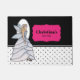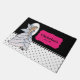 Desenhado com base na minha ilustração de moda de uma linda senhora loira de cabelo loiro usando um deslumbrante vestido de pétalas de flor branco cinza clássico e elegante. O design tem bolinhas pretas e brancas no fundo - um tapete de estilo moderno e chic, perfeito para sua casa ou empresa. Personalizável com seu próprio texto para um design personalizado.