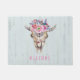 Cor d'água colorida ilustração do crânio de touro com flores e setas sobre fundo. Modelo de porta personalizável