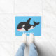 Este design bonito apresenta uma feliz e sorridente baleia matadora soprando bolhas em um fundo azul para se divertir!