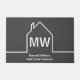 Esta porta personalizada da cinza escura é simples e sutil com seu monograma e nome da empresa imobiliária em branco. Apresenta um contorno branco minimalista de uma casa. Um tapete moderno de porta de negócios.