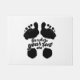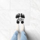 Pegada literal branca e preta com as palavras "Seja onde seus pés estão", escritas em toda a parte, servindo como um lembrete para o prestígio e a alegria na sua vida diária.