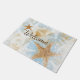 Esta porta de boas-vindas tem um belo impressão de estrelas-da-costa com um grande e pequeno peixe-estrela realista e vários outros impressos em branco sobre fundo azul claro e Bem-vindo em uma fonte de script. Procure outros produtos nesta Coleção Costeira de Starfish. Design pelo Emporium de Jenn.