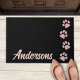 Bem-vindos convidados para sua casa com estas elegantes impressões rosa douradas com pata brilhante e tapetes personalizados com nome de porta e decoração doméstica Este design de impressão de pata rosa e preta é moderno, elegante e favorito. Um deve ter para cada mãe de gato ou cão, e amante de animais, gatos e cachorros. Maravilhoso presente personalizado de Natal ou aniversário. COPYRIGHT © 2020 Judy Burrows, Black Dog Art - Todos os direitos reservados