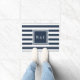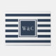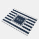 Porta monográfica personalizada com na moda elegante com formato monograma, apresentando um padrão riscado marinho azul e branco com suas iniciais definidas em um quadrado marinho com borda azul com um texto branco clássico. Personalize com seus detalhes e personalize a cor para a cor de sua escolha. Projetado por Thisnotme©