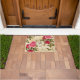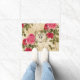 Rosas cor-de-rosa e vermelhos do vintage em um fundo do damasco do creme e do ouro acentuado por uma inicial que monogrammed você pode personalizar, faz uma esteira bem-vinda elegante. Projetado pelo ©Tim mundialmente famoso Coffey do artista.
