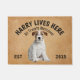 Jack Russell Terrier Personalizou o amante de Cachorro bem-vindo. Este tapete de boas-vindas pode ser personalizado com o nome do seu cão, o slogan também pode ser mudado ou você pode usar uma fotografia do seu próprio cão (certifique-se de que é transparente). O texto diz: Harry mora aqui... Todos os tratamentos são bem-vindos Edite o design para alterar a fonte, as cores e a cor de fundo. Ao substituir a imagem do seu cão, use uma imagem transparente. Faz um presente maravilhoso para uma festa de inauguração, feriados, amantes de cachorros e a maioria das vezes.