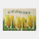 Esta porta é adorada com lindas tulipas amarelas que estão esperando para receber Primavera e seus convidados. Colocada sobre um fundo bege, esta design tem um toque gráfico, com três bordas laterais amarelas e verdes. O texto e a cor de fundo podem ser personalizados.
