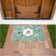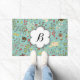 Jardim lunático, um bonito, colorido, divertimento, design lunático do creme, marrom escuro, coral, azul, e flores e pássaros do verde em um fundo bonito do azul do aqua. Este divertimento, esteira de porta colorida, lunática caracteriza uma bandeira da forma da flor branca que você possa facilmente personalizar com sua inicial do monograma!