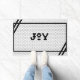 Repita a alegria de som nesta estação com esta porta design de azulejo de preto e branco! Este tapete branco lê "Joy" em preto com uma fronteira negra moderna.
