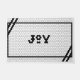 Repita a alegria de som nesta estação com esta porta design de azulejo de  preto e branco! Este tapete branco lê "Joy" em preto com uma fronteira negra moderna.